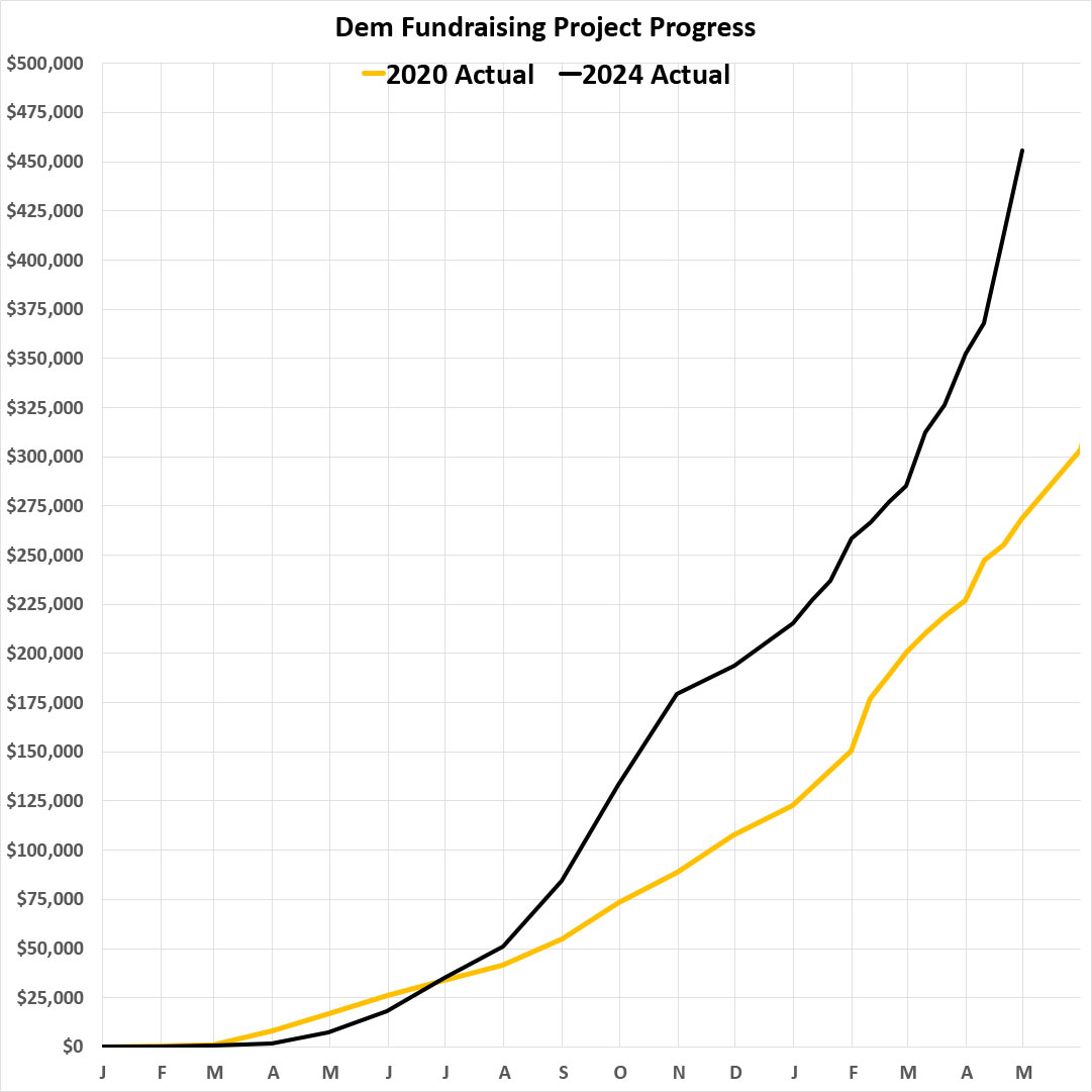 Four years ago, at the end of March 2020, I had raised a total of just over $227,000 for Democrats up & down the ballot, broken out as follows;