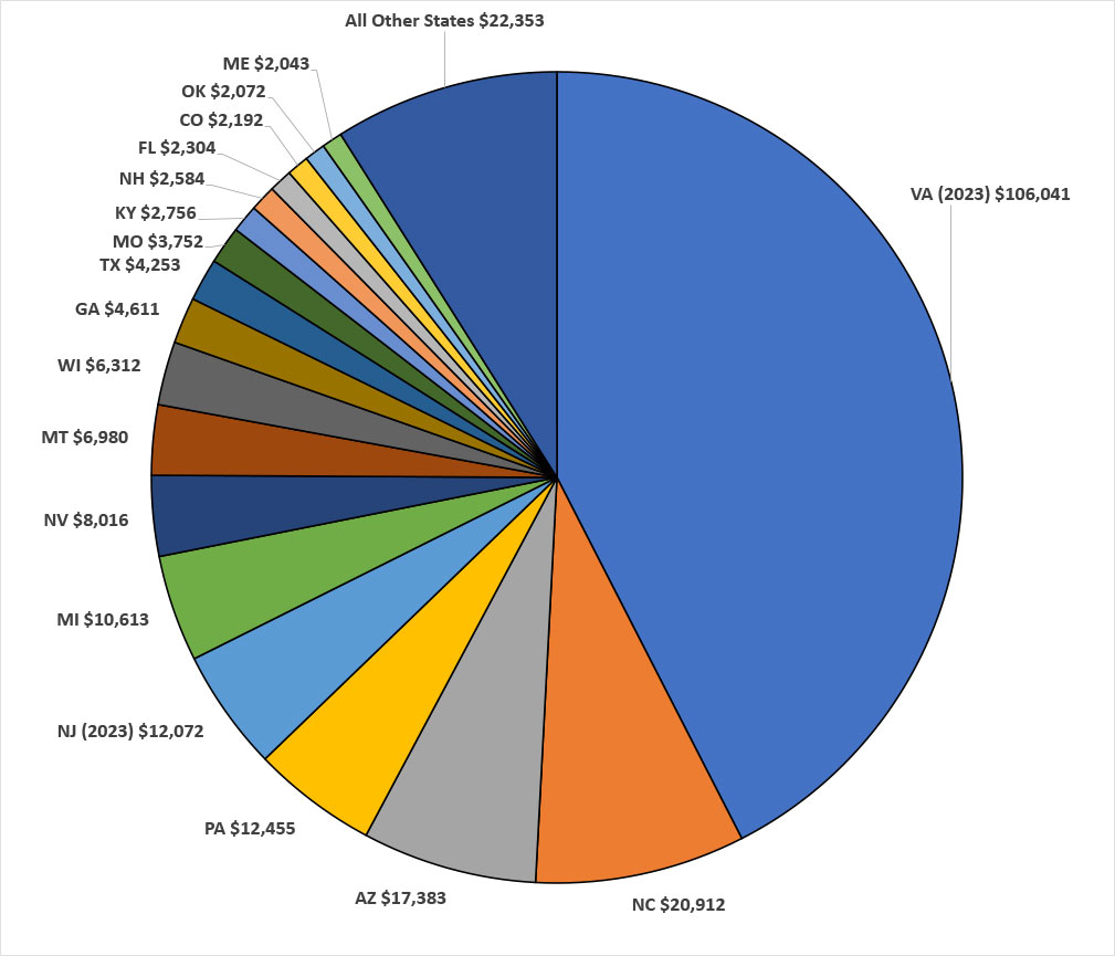 • This ranges from as little as $1.00 for a handful of candidates to as much as ~$4,800 for a few of the Virginia candidates.