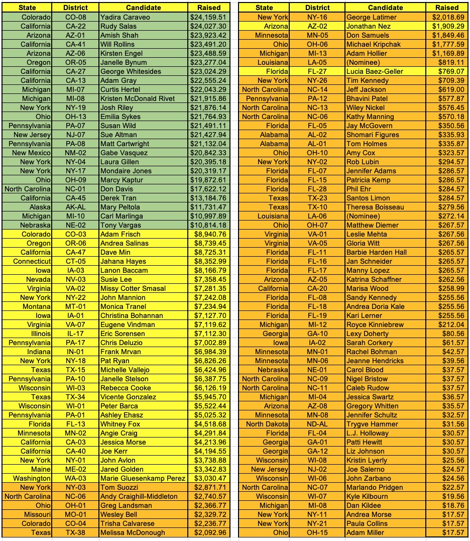 - My U.S. House fundraising is a different story: It's 2.7x higher than what I had raised at this point last cycle.