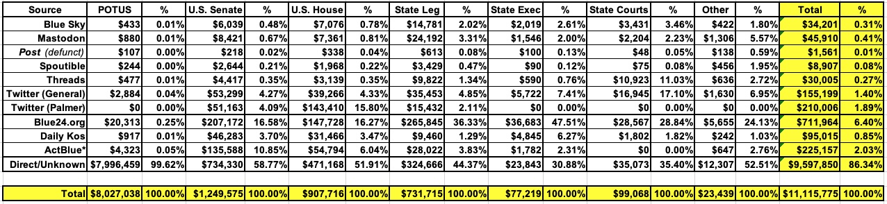 When I launched my 2024 fundraising project, I was naively hoping to raise perhaps $4 million total, broken out roughly into thirds: 1/3 U.S. Senate races; 1/3 U.S. House races; and 1/3 State Legislative and Statewide Executive races. While I included President Biden on some pages as a courtesy, I was really hoping to focus heavily on down ballot races, especially at the state legislative level.