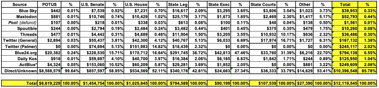 When I launched my 2024 fundraising project, I was naively hoping to raise perhaps $4 million total, broken out roughly into thirds: 1/3 U.S. Senate races; 1/3 U.S. House races; and 1/3 State Legislative and Statewide Executive races. While I included President Biden on some pages as a courtesy, I was really hoping to focus heavily on down ballot races, especially at the state legislative level.