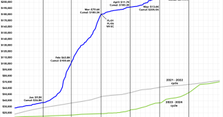 Going forward, assuming things play out similarly to how they did during the last midterm cycle (2021-2022), I'd expect July- August to look similar to May (perhaps $14K/month or so), followed by things spiking somewhat in September & October ahead of the Virginia & New Jersey gubernatorial/state legislative races.
