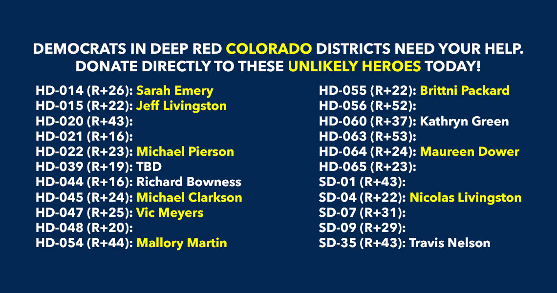 Donate to Democrats running in deep red districts to boost turnout & force Republicans to defend their turf!