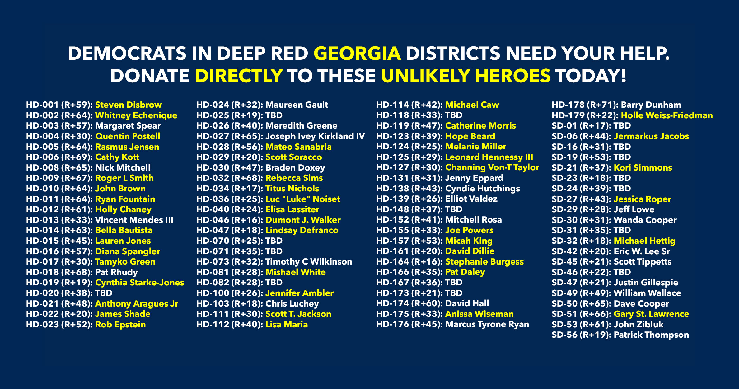 Donate to Democratic candidates running in competitive districts to keep & flip as many seats blue as possible!