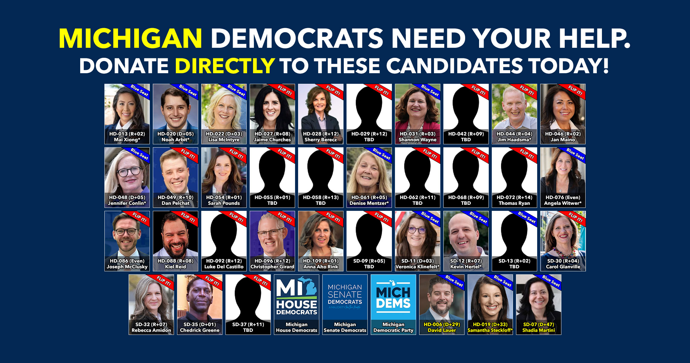 Donate to Democratic candidates running in competitive districts to keep & flip as many seats blue as possible!