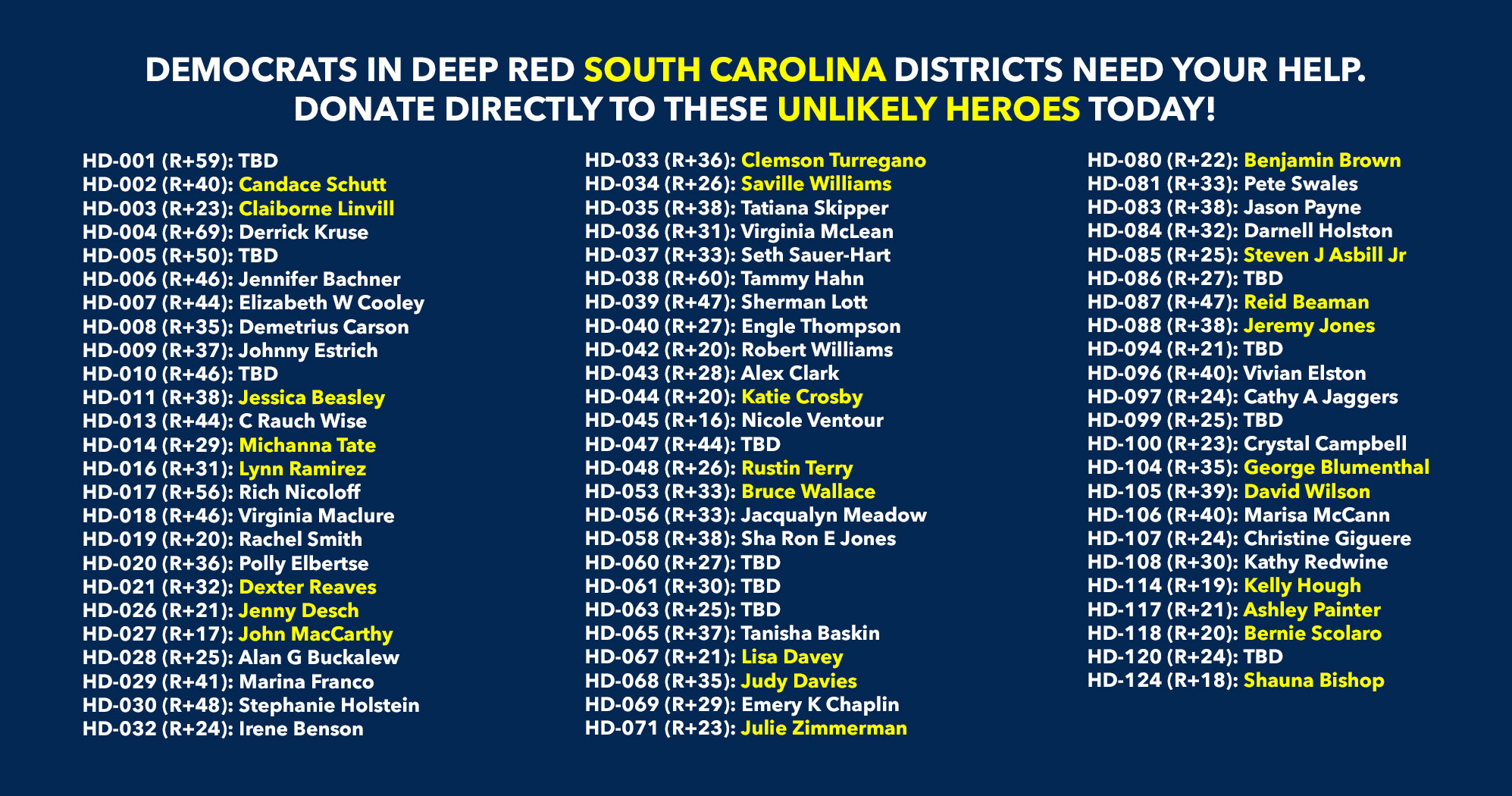 Donate to Democratic candidates running in competitive districts to keep & flip as many seats blue as possible!